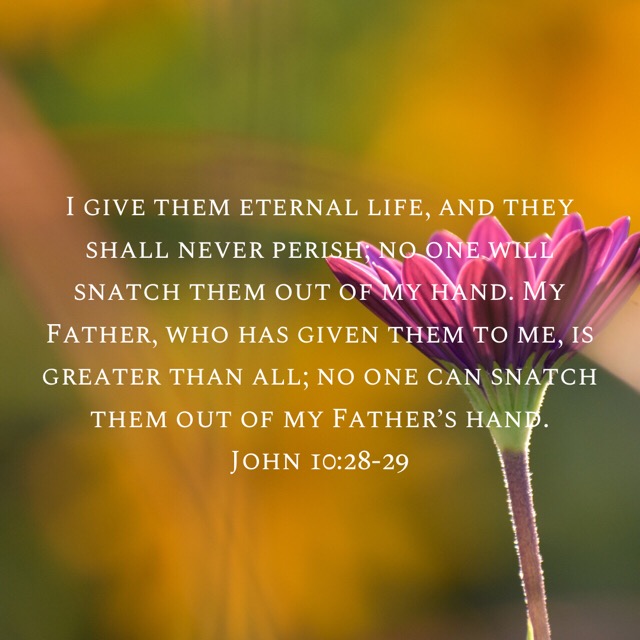 I want to encourage you this morning as you are about to embrace this new day. Jesus want us to understand in John 10:28-29, within him we have eternal life. He is the gate, the bridge between us and the Father. For no one comes to the Father except through Him, Christ Jesus. And since we are in Christ, no one. No angel nor demons, death nor life, present nor future, heights nor depth can separate you from the love of God that is in Christ Jesus. None of those can even snatch you from God’s hand or Jesus’s hand. He has you in the palm of his hand watching over you.